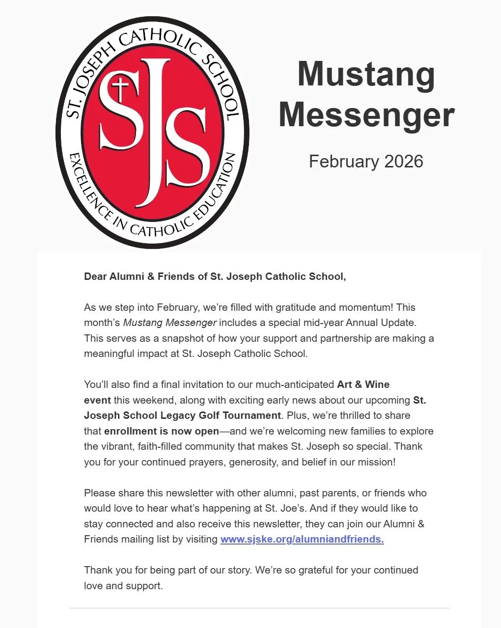 By subscribing to our Alumni & Friends newsletter, you’ll receive stories, updates, and opportunities to support the school that helps to shape so many lives. Together, we can ensure that the legacy of St. Joseph continues to shine brightly.