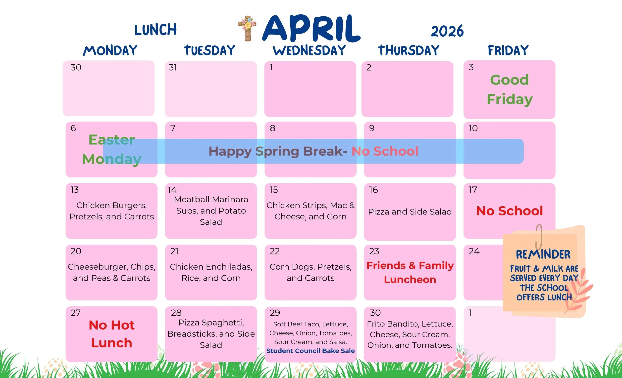 During Lent the hot lunch program will abstain from meat on Fridays.